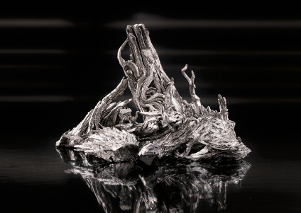 块状或针状结晶,呈银灰色金属光泽。