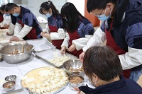 在这个欢庆的日子里,有研稀土在职工食堂举办包饺子活动,自己动手做一顿团圆饭。公司高管、首席专家以及公司各部门近50名包饺子好手一齐动手,一边拌馅儿、擀面皮、包饺子,一边总结过去、畅想未来。一个个饺子在欢声笑语中诞生。