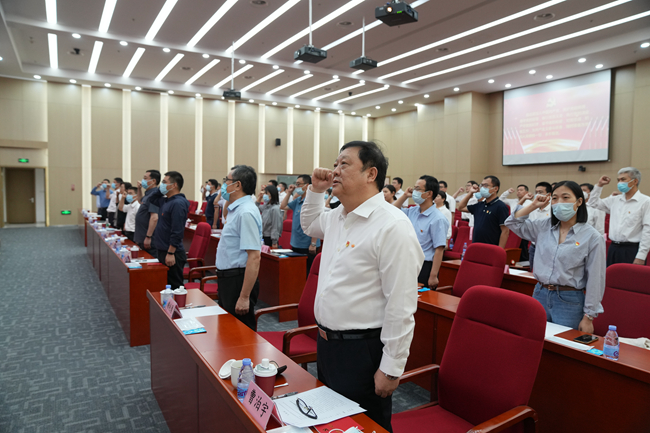 主题党日活动以现场全体党员重温入党誓词开始,邀请中央党史和文献研究院机关党委副书记穆兆勇同志以“光辉旗帜 根本遵循”为题授课,解读了党的二十大修改党章的重大原则、重大观点、重大论断、重大概念、重大部署,为集团党建、纪检、巡视干部践行“学思想、强党性、重实践、建新功”的时代要求,提供了理论的源头活水,提供了学习深化的指引指南,使同志们更加深刻领悟习近平新时代中国特色社会主义思想和党章深邃的政治立意和理论内涵,更加深刻认识把握“两个确立”的决定性意义,更加深刻领会在强国建设、民族复兴的新征程上,要始终心怀“国之大者”、牢记初心使命的重大意义。