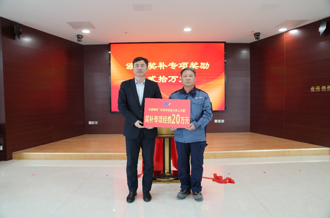 王兴权为技能大师工作室颁发奖补专项奖励。
