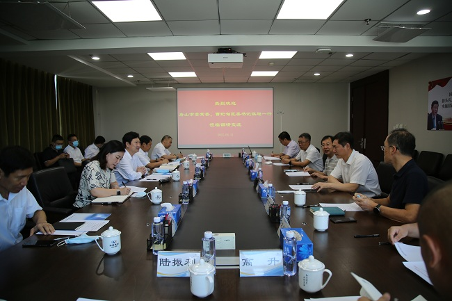 2022年8月11日,唐山市委常委、曹妃甸区委书记侯旭一行到访有研集团,有研集团党委书记、董事长赵晓晨,副总经理王兴权陪同参观展室并座谈。