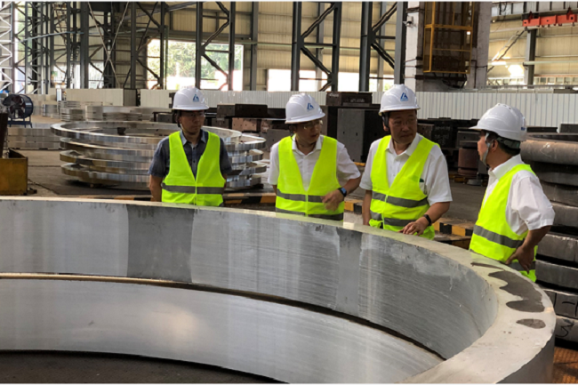 团队带头人与西南铝技术负责人在生产现场交流
