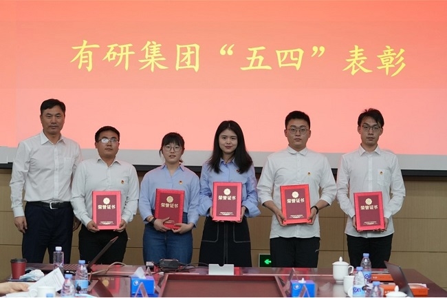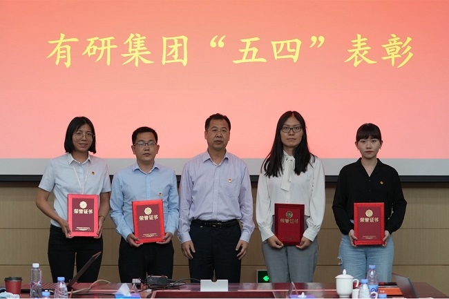 曹泊宇宣读有研集团“五四”表彰决定,授予山东有研半导体硅片制造部等2个集体“青年文明号”称号,授予有研国晶辉团支部等2个团组织“五四红旗团支部”称号,授予国联研究院任志敏等6名同志“青年岗位能手”称号,授予有研粉材杨铭等4名同志“优秀共青团干部”称号,授予有研兴友王婧等10名同志“优秀共青团员”称号,集团领导现场向获奖代表颁奖。