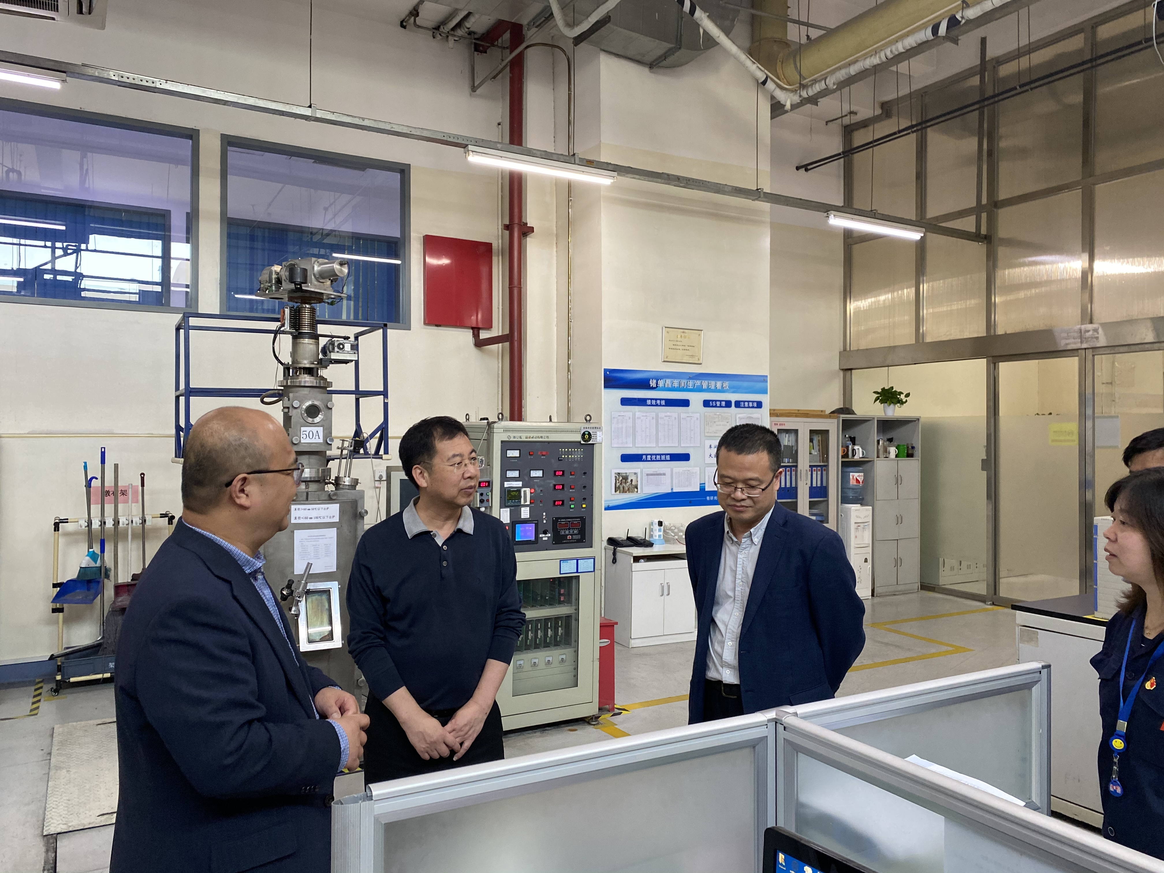 4月27日,有研集团党委书记、董事长赵晓晨到有研光电、有研国晶辉调研,伟德国际victor1946副总经理、有研国晶辉总经理杨海,伟德国际victor1946副总经理、有研光电总经理霍承松陪同。